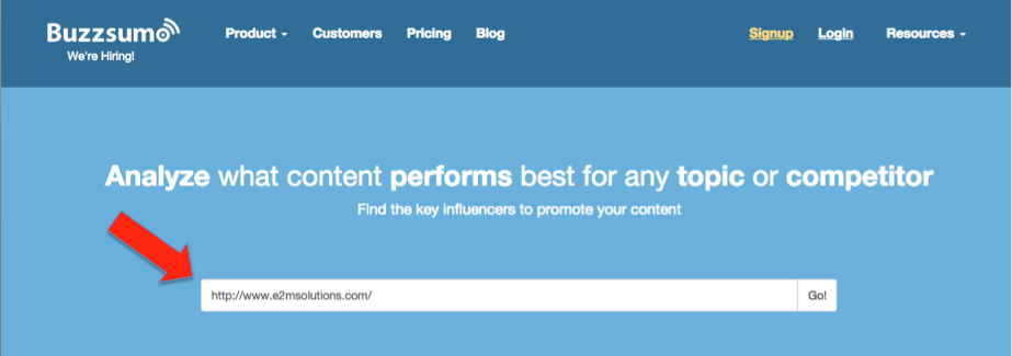 In order to do this, you’re going to choose a competitor’s blog, and search it in BuzzSumo: