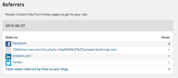 If you run a WordPress blog, you can get the Jetpack application, which will show you where your blog traffic comes from. So you can see exactly where people are clicking through to each individual post from.