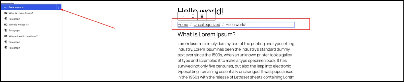 The Breadcrumbs block automatically displays page hierarchy and navigation paths.